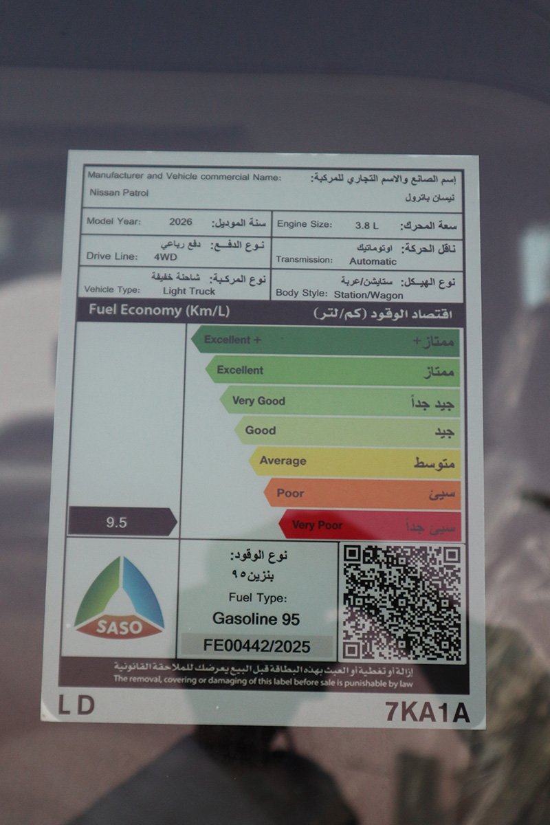 - محرك 6 سلندر بسعة 3.8 لتر بنزين