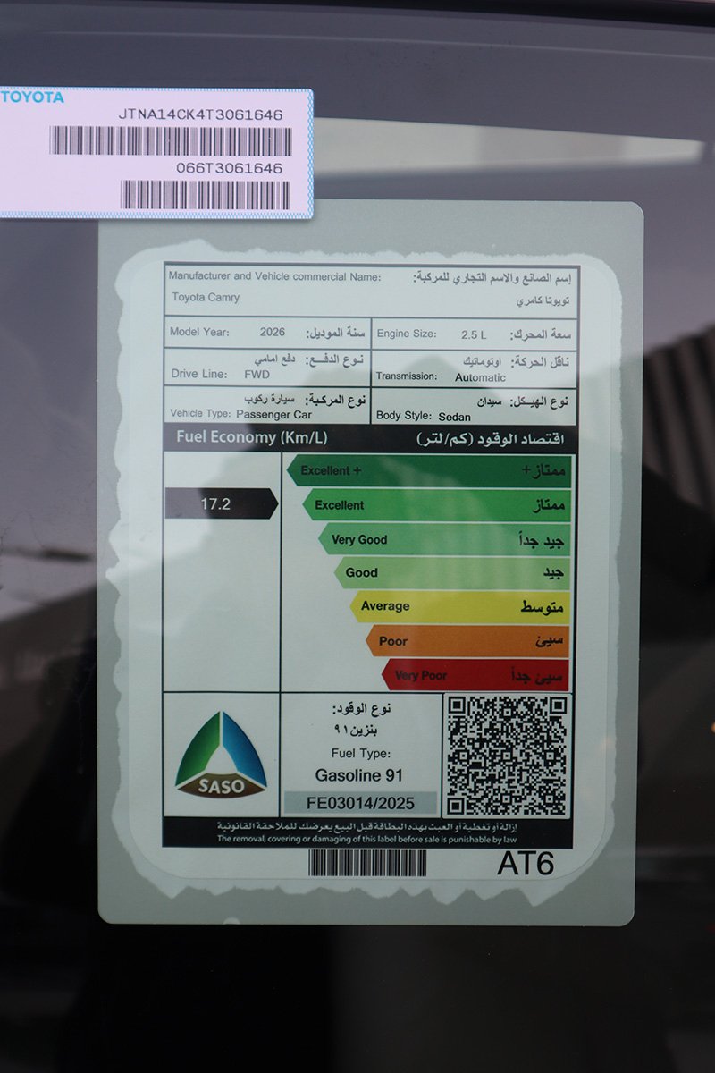 - كفاءة استهلاك الوقود : 17.2 كم/ لتر