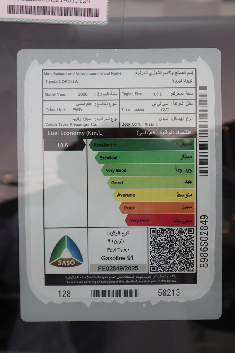 - استهلاك الوقود : 18.6 كم/ لتر