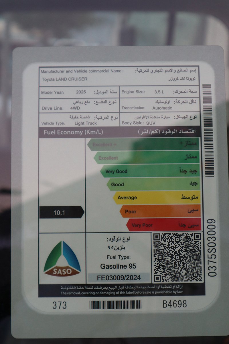 - كفاءة استهلاك الوقود: 10.1 كم/لتر