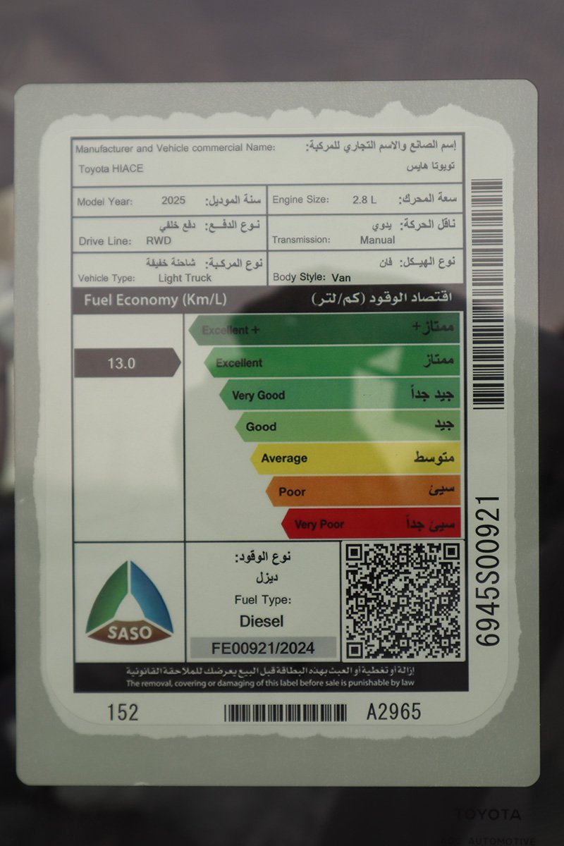 - ملصق نوع الوقود “ديزل يورو 5” (صنع في جنوب أفريقيا)